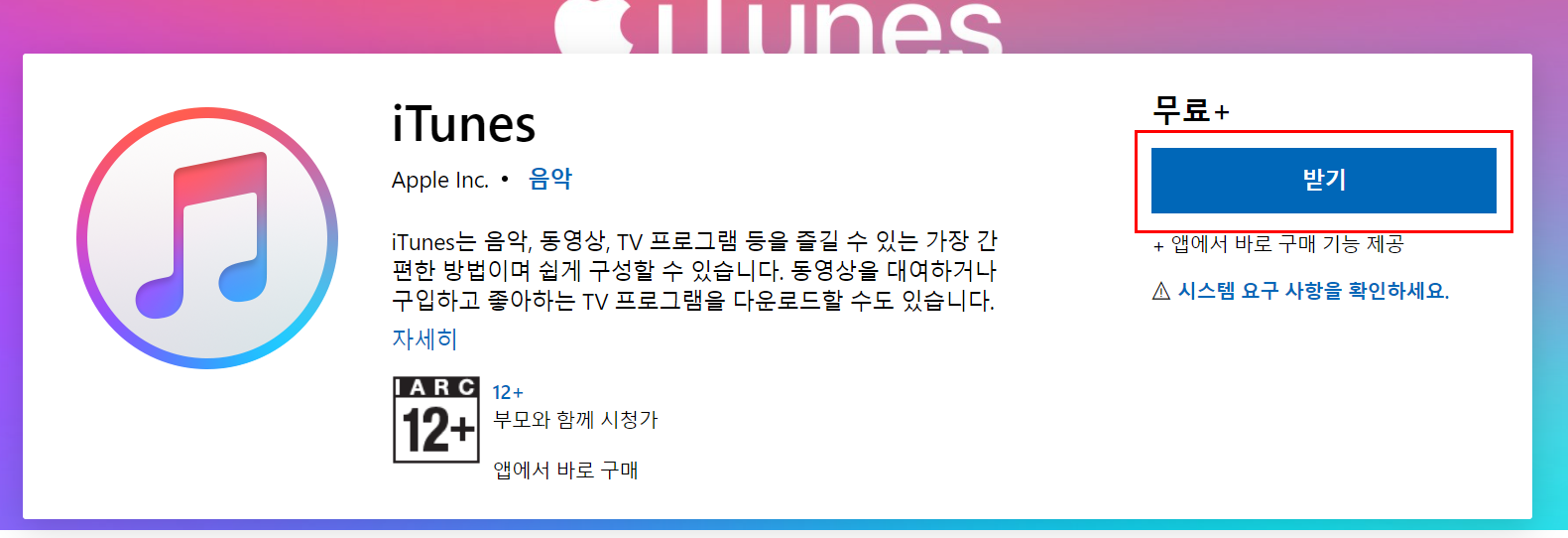 ● 1. 윈도우 PC에서 아이튠즈를 설치하는 방법을 알아보겠습니다. 해당 URL를 이동해서 받기를 클릭합니다.