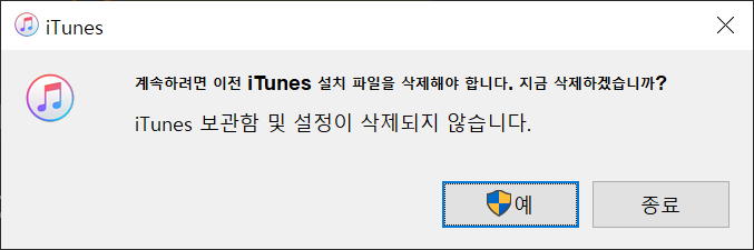 ● 4. 그리고 예전에 설치된 파일이 있다면 해당 경고가 나오고 예를 클릭합니다.
