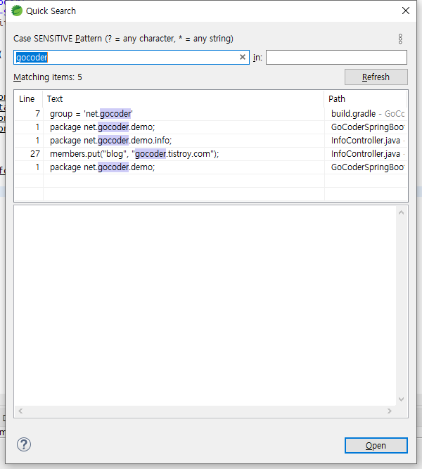 ● 3. 설치가 완료되었다면 단축키 Ctrl + Alt + Shift + L를 클릭합니다. 그럼 해당 창이 뜨고 키워드를 입력하면 마치 인텔리제이처럼 즉시 검색이 가능합니다.