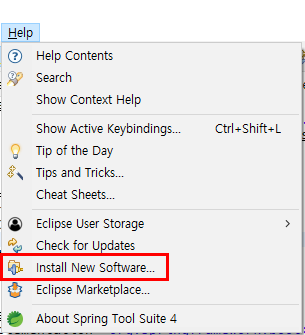 ● 1. 이클립스에서는 인텔리제이처럼 키워드로 빠르게 찾는 게 가능합니다. 최신 버전은 즉시 사용이 가능합니다. 하지만 구버전인 분들은 추가적으로 설치가 필요합니다. 그래서 이번 시간에는 검색어를 빠르게 찾는 퀵 서치 설치법을 알아보겠습니다. 우선 "Install New Software"를 클릭합니다.