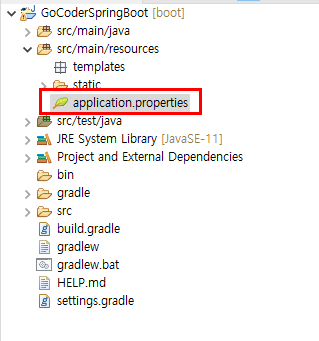 ● 1. 프로젝트에서 application.properties을 엽니다.