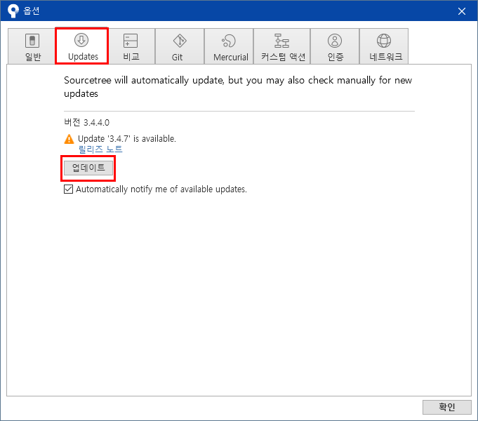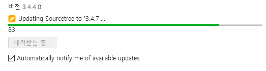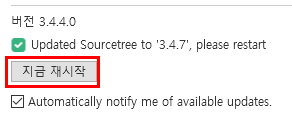 4. 지금 재시작을 누르면 소스 트리가 최신 버전으로 업데이트됩니다.