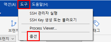 1. 소스 트리를 최신으로 업데이트하는 방법을 알아보겠습니다. 우선 상단에 "도구"에서 "옵션"을 클릭합니다.
