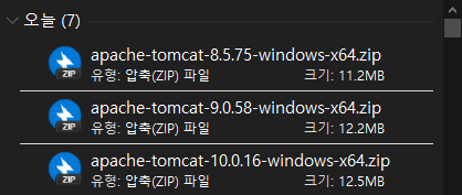 ● 1. 가장 많이 사용하는 톰캣 버전 8.5와 9.0 최신 버전을 올려둡니다. 해당 다운로드 사이트는 아래와 같습니다.