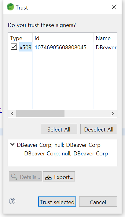 ●5. 설치되면 아래처럼 DBeaver가 보입니다. 이를 선택합니다. 그럼 사용이 가능합니다.