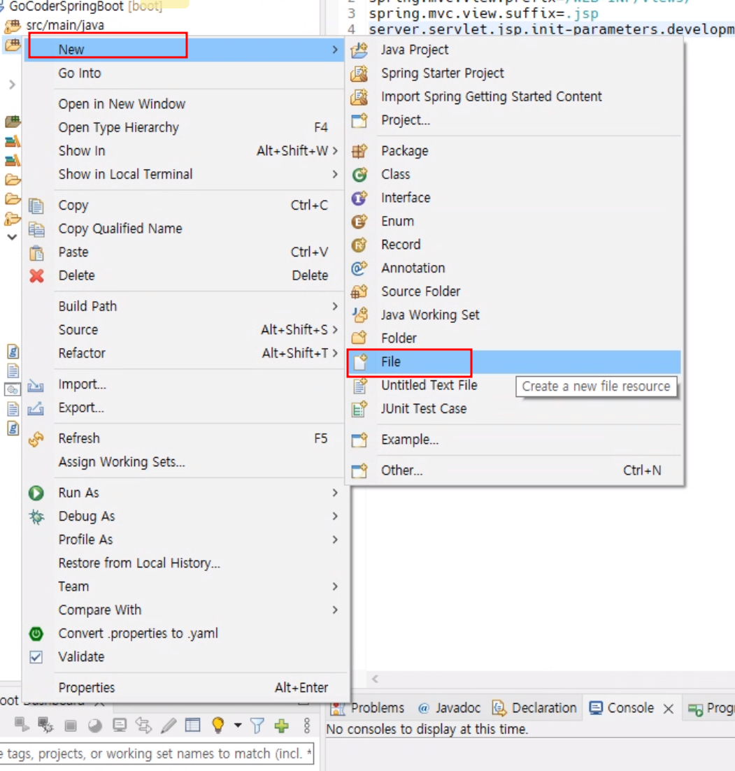 ● 1. 스프링부트를 생성하면 기본적으로 properties 파일이 생성되어 있습니다. 요즘 추세는 이 방법보다 yml을 더 많이 사용합니다. 그래서 이 상태에서 yml 파일을 생성하는 방법을 알아보겠습니다.