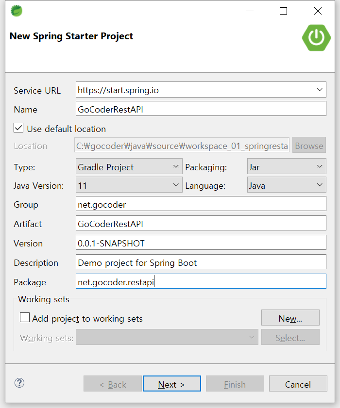 ● 4. 다음은 해당 프로젝트에 내용을 기입합니다. 각 프로젝트에 맞게 설치하시면 되지만 저랑 같은 데이터 값을 넣어서 프로젝트를 만드는 것을 추천합니다.