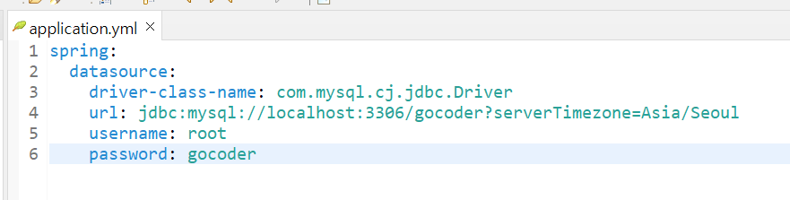 ●2. 그리고 안에 내용을 아래처럼 채워줍니다. 그대로 복사해서 붙여 넣으시면 됩니다. 그리고 안에 내용은 자신의 데이터베이스 계정에 맞게 세팅하면 됩니다.