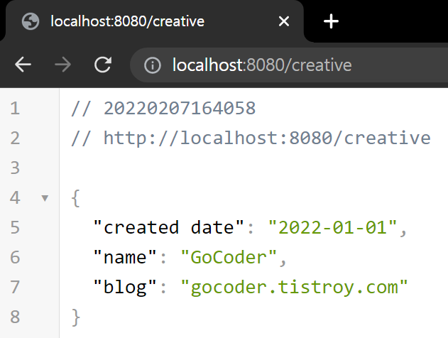 ●2. 결과 화면은 이렇게 JSON 형태로 자연스럽게 표시됩니다. 스프링 부트 @RestController이 마법처럼 알아서 만들어줍니다. 이렇게 하면 RestAPI를 만드는 가장 쉬운 수동 방식이 됩니다. 그리고 크롬에서 확인할 때는 JSON Viewer를 확장 프로그램으로 설치해야 정리 정돈된 화면으로 보실 수 있습니다.