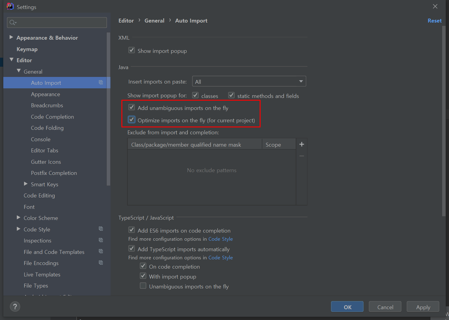 ● 2. 설정방법은 환경설정에서 Editor -> General -> Auto Import에서 해당 두개의 체크를 해주면 됩니다.