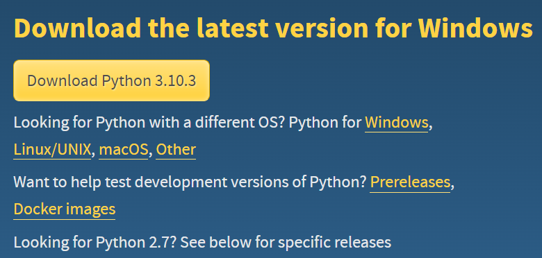 ● 1. 파이썬을 사용하기 위해서는 파이썬 설치 프로그램을 다운로드하고 설치해야 합니다. 해당 사이트로 이동합니다. 그리고 아래에 Download Python을 클릭하면 자동으로 프로그램을 다운로드됩니다.