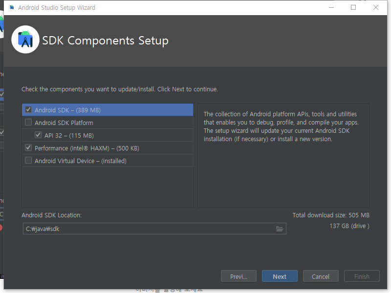 ● 1. 안드로이드 스튜디오를 설치할 때 SDK 설정할 때 흔히 볼 수 있는 오류가 있습니다. 바로 이런 메시지입니다.