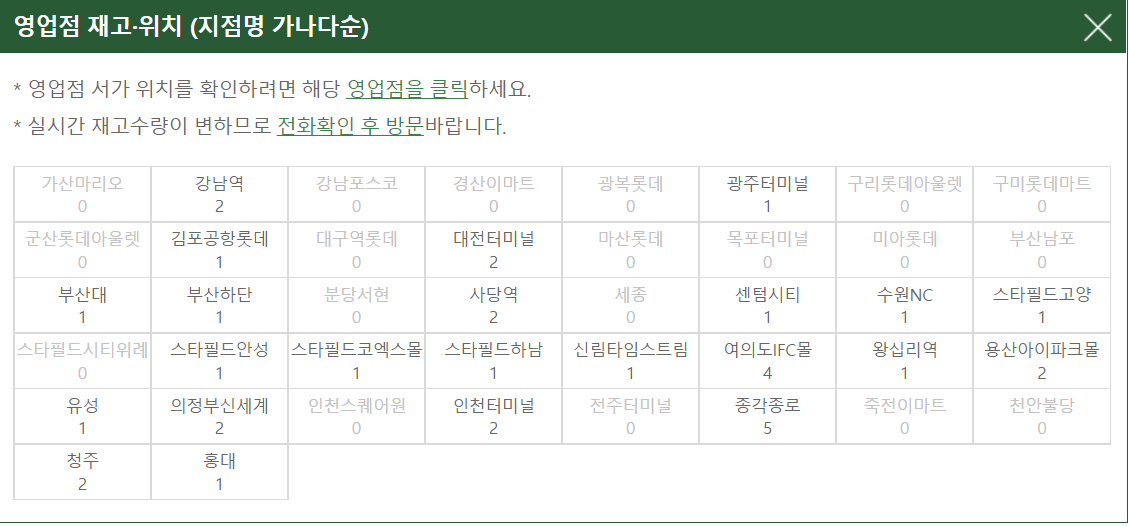 ● 2. 다음 아래와 같이 영업점 재고 및 위치 확인을 클릭합니다.