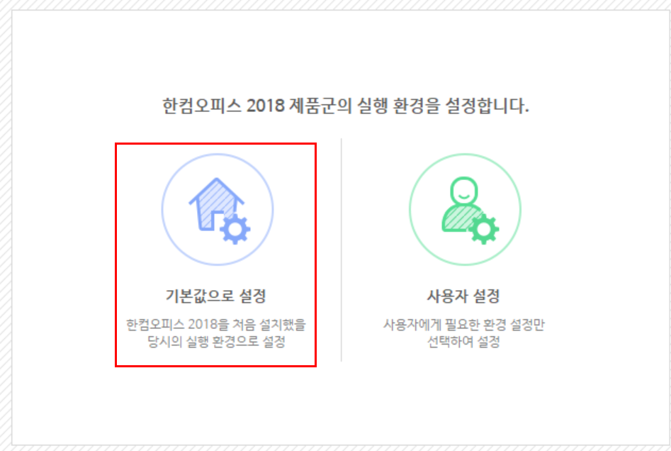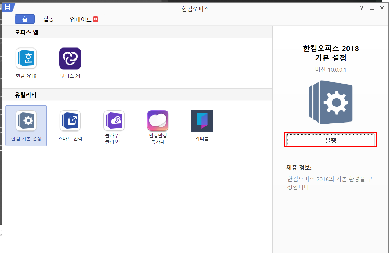 ●2. 그리고 한컴 기본 설정에서 "실행" 버튼을 클릭합니다.