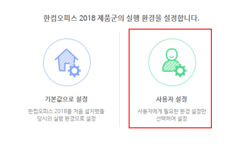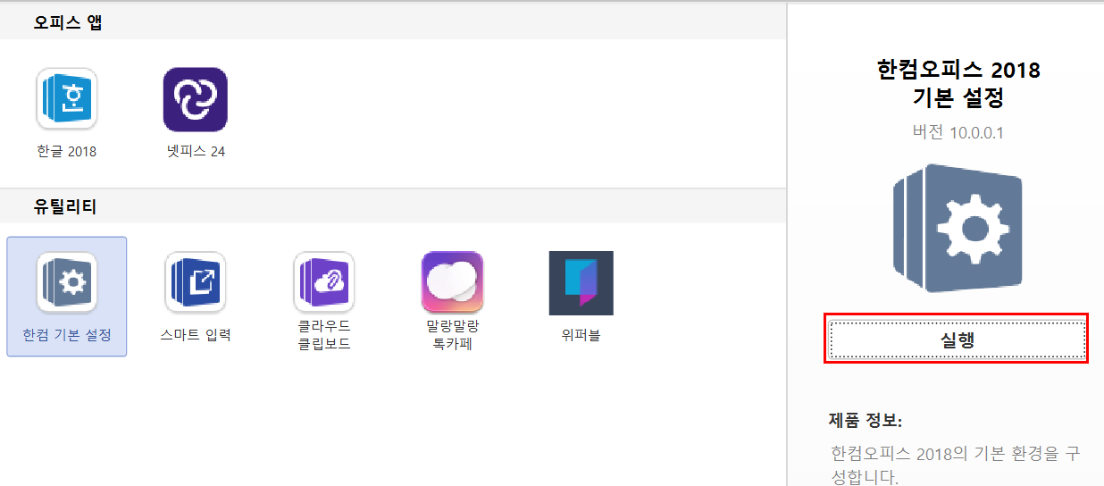 ● 2. 한컴 기본 설정에서 "실행" 버튼을 클릭합니다..