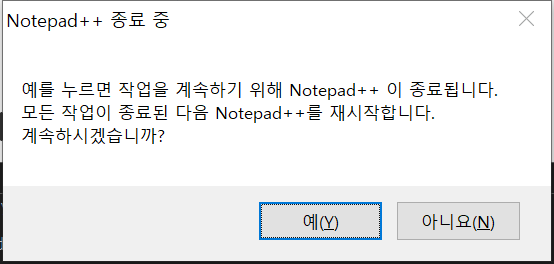 ● 2. 그럼 해당 창이 열리고 여기서 예를 눌러 프로그램을 다시 시작합니다.