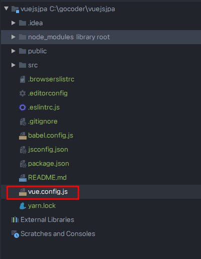 ● 2. 먼저 package.json 와 같은 폴더 레벨에서 "vue.config.js" 파일을 만듭니다.