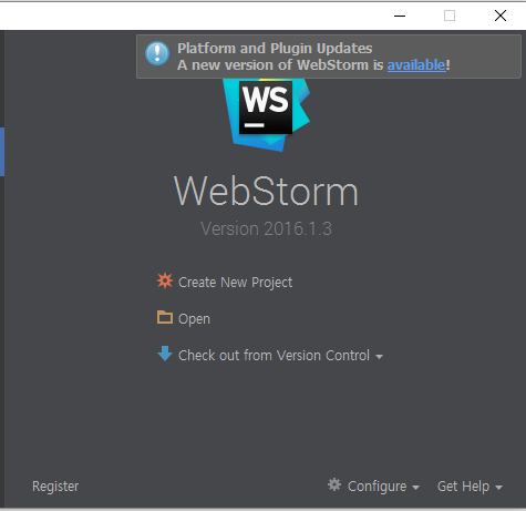▼ 웹스톰으로 설치가 완료하였습니다.